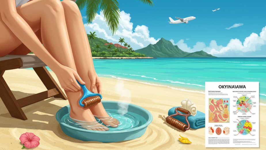飛行機での長時間移動後のむくみ解消!沖縄旅行前に知っておくべき足つぼケア